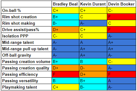Who even is the point guard? Are they all just taking turns handling the ball? Outside of Durant, those passing grades aren’t really good.