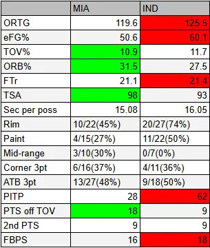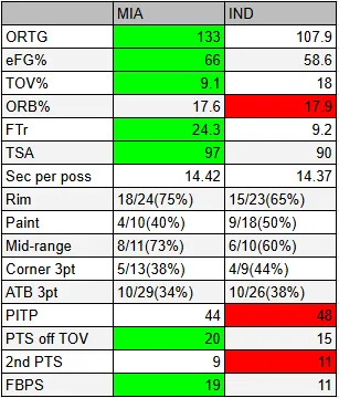 Starting with the simple stuff that can and has been taken care of by the Heat are the transition points. The Heat had nine turnovers in that ~14-minute stretch. That resulted in 15 points and nine fastbreak points: