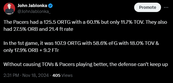 Offensively, it wasn’t the best kind of process where it was again lifted by better 3-point shooting because they still couldn’t finish anything inside. They went 23/43 inside the arc, including 22/39 in the paint.