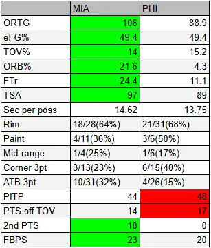 Per Couper Moorhead, the Heat had the highest shot quality of the season against the 76ers at 56.5, but it was also the highest shot quality they have allowed at 55.3