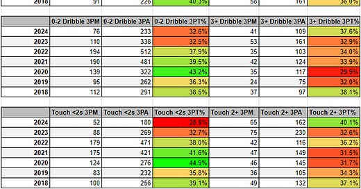 Went digging into some Rozier’s 3pt shooting. It’s curious to see how he’s been a much better catch and shoot guy over his career until last season. That’s where you have the drop off. He’s also been a poor off the dribble shooter(and streaky) but has had a hot stretch this year