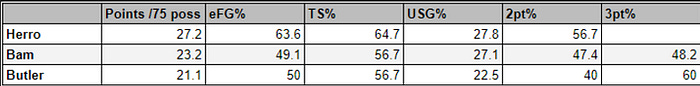 Take Herro’s stats with and without Butler: