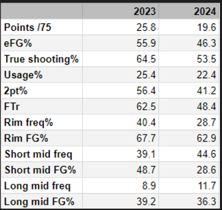 Every stat has gone down except for the frequency going up for short and long mid-range. That’s not a good look. That has been the reason for their offense.